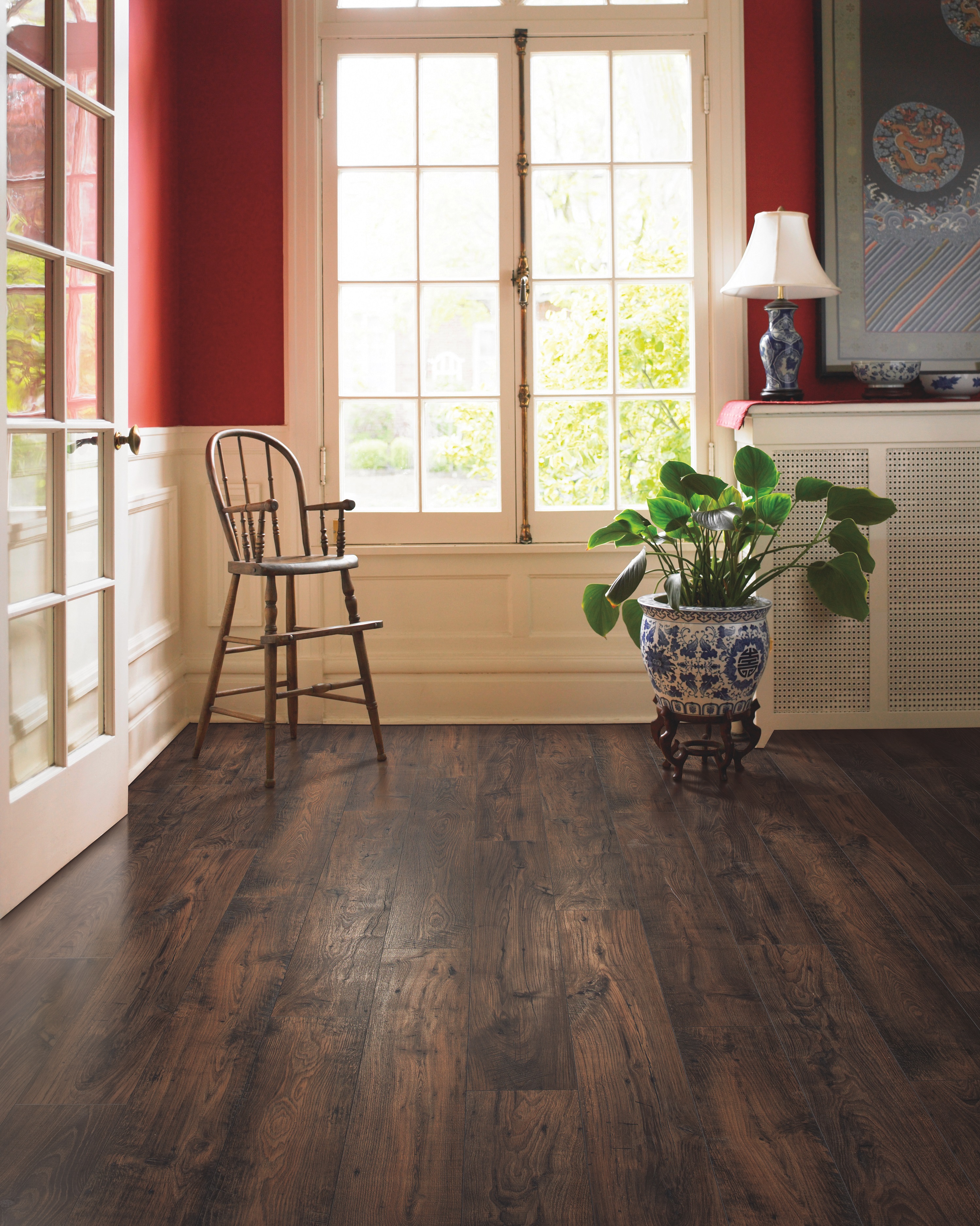 The 12mm thick wide planks are long and heavily textured.